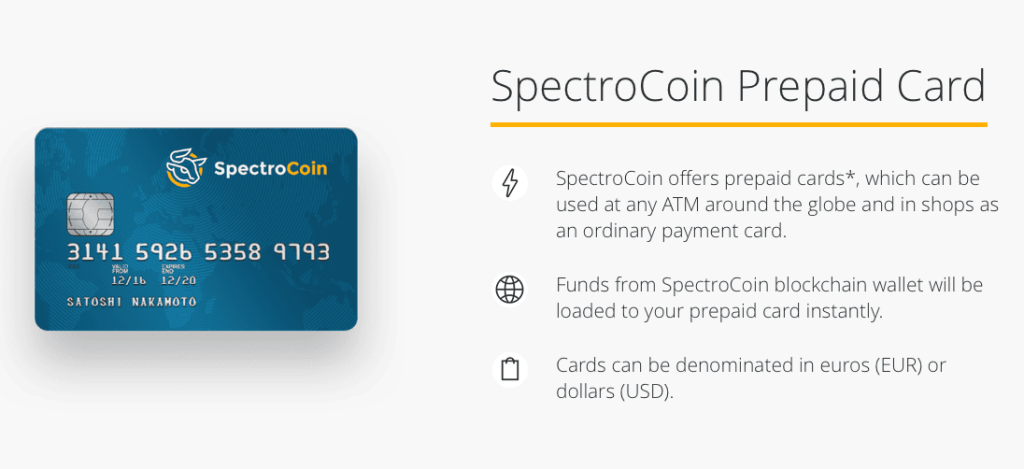 En plus de sa carte prépayée, SpectroCoin propose également d’autres services : un portefeuille virtuel et une bourse d’échange.