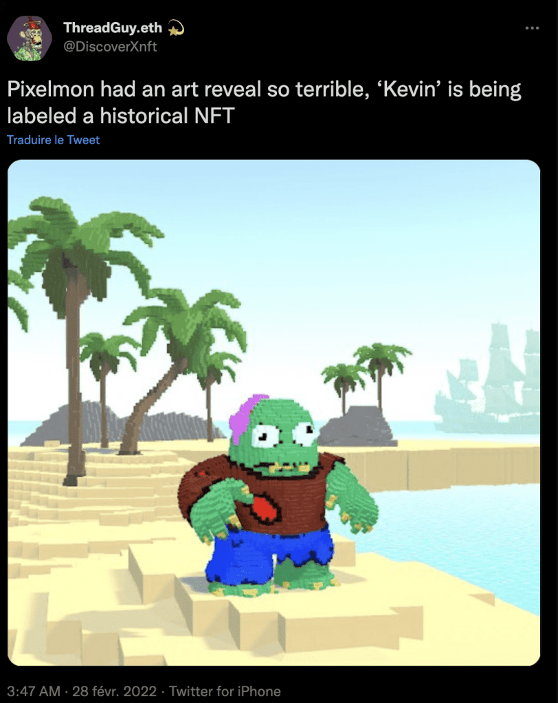 Cependant, toute cette épreuve semble avoir fait grimper la valeur de certains des NFT Pixelmon comme le fameux NFT devenu viral, devenu un mème qu’est le NFT Kevin.